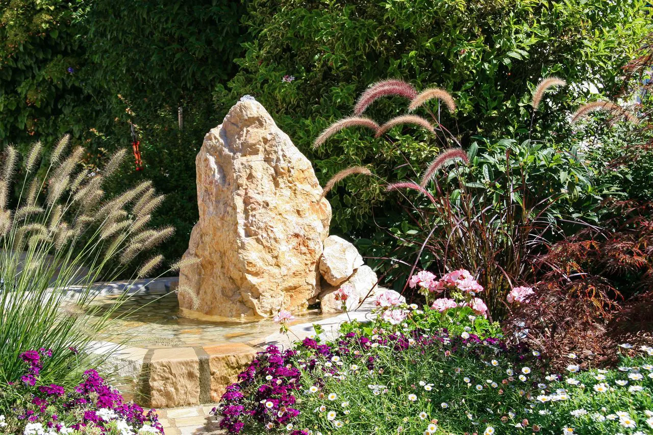 Wasser, ein wichtiges Element des Lebens. Das Plätschern eines Wasserspieles wirkt auf viele Menschen nach einem stressreichen Tag als pure Entspannung. Selbst in einem kleinen Garten kann z. B. ein Quellerstein mit darunter verstecktem Wasserdepot seinen Platz finden und eine wohltuende Stimmung verbreiten.